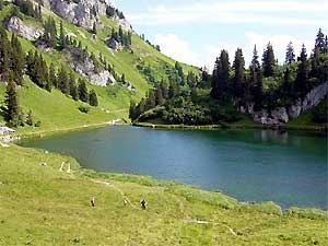 Le lac d'Arvouin est situé à 1663 mètres sur la commune de La Chapelle d'Abondance. Il mesure 275 m de long et 200m de large soit une superficie de 2 ha pour une profondeur de 10m. Le lac est entouré de versants raides et de sommets escarpés. Le lac donne naissance au ruisseau des Thoules ou d'Arvouin qui conflue avec la Dranse d'Abondance. Plus de renseignements sur http://www.valdabondance.com/ Découvrez les autres photos sur le site de Balades et Randonnées Pédestres en Haute-Savoie : http://savoierandos.free.fr/ |