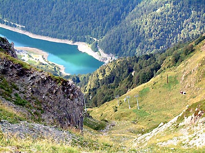 Un grand lac, mais peu extraordaire. Un lac de barrage qui ne demande aucun mérite puisque votre véhicule peu vous y conduire au pied. Par contre, il devient plus beau à voir du haut de la station d'Artouste, lorsque vous admirez au loin le col du Pourtalet et sa majesté le pic du midi d'Ossau. |