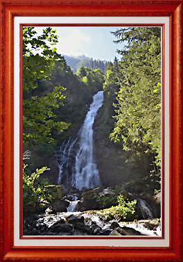 Au loin, la cascade se fait entendre. Parvenus à une épingle, on peut soit continuer le GR tour du pays pour fair une boucle. On peut aussi se rendre au pied de la cascade. Son accès peut être rendu compliqué selon l'humidité. C'est ce que nous ferons d'autant plus qu'il n'y a pas trop de monde ce qui permet de prendre des photos sans déranger ou sans être dérangés. Comme nous avons déjà fait l'autre partie du chemin lors de notre randonnée aux lacs de 7 Laux, nous retournons sur nos pas par le même itinéraire. Nous prendrons notre repas au bord du plan d'eau, tout en nous instruisant sur l'origine des 7 Laux. D'où vient le nom des "7 Laux" ? Cette montagne a d'abord été connue sous le nom du "Montage Abîmée" (1622) puis de "Caelo" sur la carte de Tillemon en 1690 : en latin Caelum siginife montagne du Ciel. Ensuite, en 1803, le Comte de Barral fit dresser une carte pour figurer dans son contrat de mariage ; sur celle-ci on trouve l'orthographe Ceylau qui, déformé phonétiquement devient "7 laux". En français, le pluriel de lac est toujours lacs et le massif comporte 14 lacs nommément désignés, et non 7 comme on pourrait le croire.